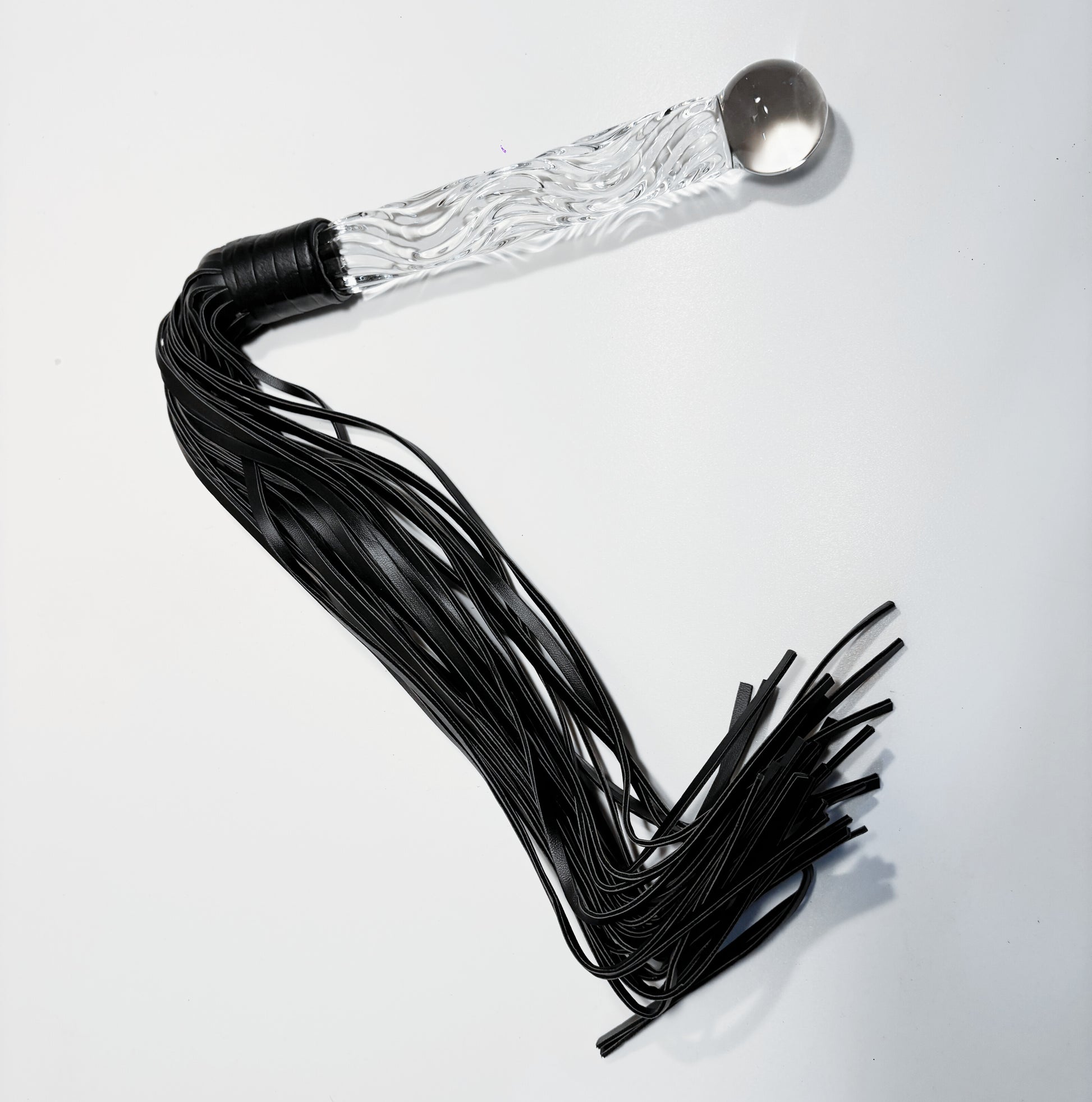 Command attention and sensation with the Crystal Handle Leather Whip, a stunning blend of luxury craftsmanship and exhilarating play. Featuring a sparkling crystal-encrusted handle and supple leather tails, this whip is designed for those who appreciate both style and strength in their intimate moments.